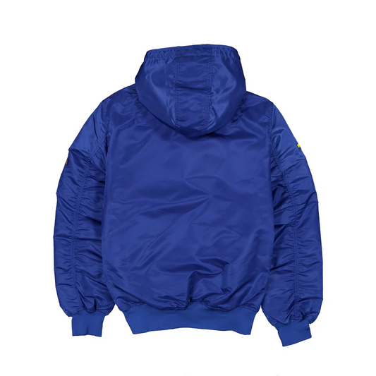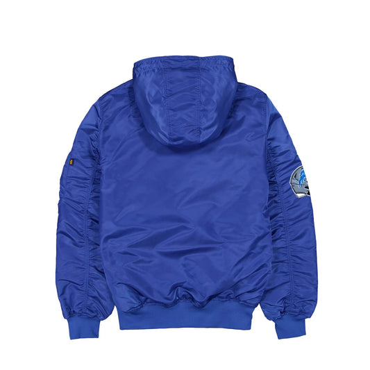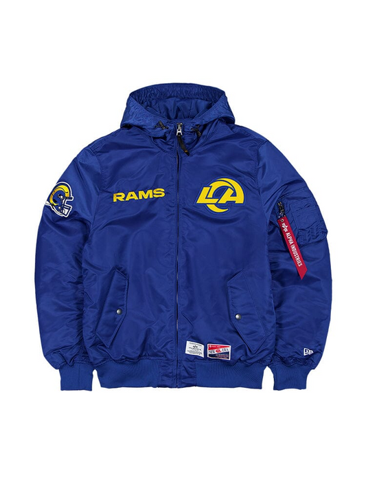 LOS ANGELES RAMS MEN'S NEWERA X ALPHA INDUSTRIES L-2B HOODED BOMBER JACKET - BLUE