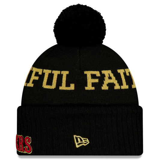 SAN FRANCISCO 49ERS 2025 RIVALRY SIDELINE COLLECTION CUFFED KNIT WITH POM - BLACK