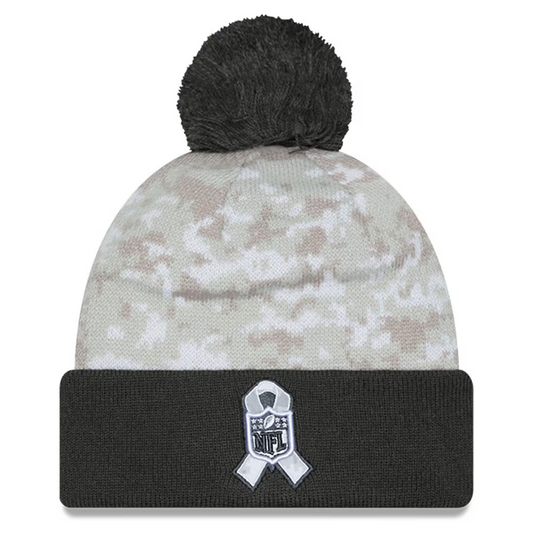 LAS VEGAS RAIDERS WOMEN'S 2024 NFL SALUTE TO SERVICE CUFFED KNIT BEANIE WITH POM - ARTIC WHITE/GRAPHITE
