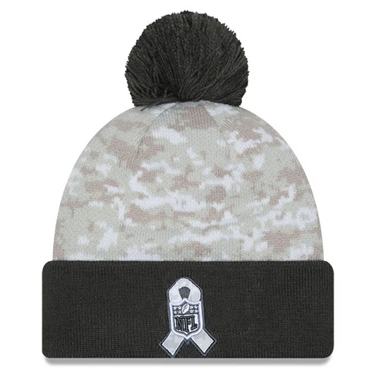 BUFFALO BILLS 2024 NFL SALUTE TO SERVICE CUFFED KNIT BEANIE WITH POM - ARTIC WHITE/GRAPHITE