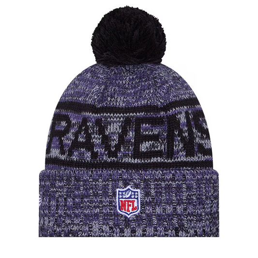 BALTIMORE RAVENS 2025 NFL SIDELINE COLD WEATHER CUFFED KNIT WITH POM - PURPLE