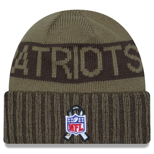 NEW ENGLAND PATRIOTS 2025 NFL SALUTE TO SERVICE CUFFED KNIT BEANIE - DARK GREEN