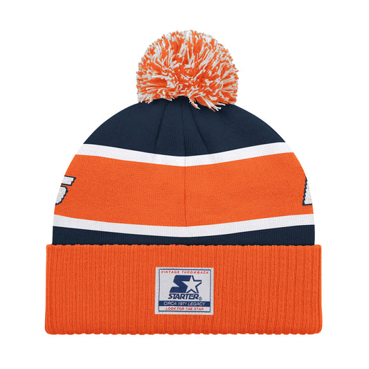 DENVER BRONCOS MEN'S STARTER LEGACY CUFFED KNIT WITH POM - ORANGE/NAVY