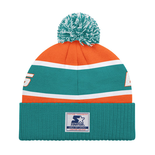 MIAMI DOLPHINS MEN'S STARTER LEGACY CUFFED KNIT WITH POM - AQUA/ORANGE