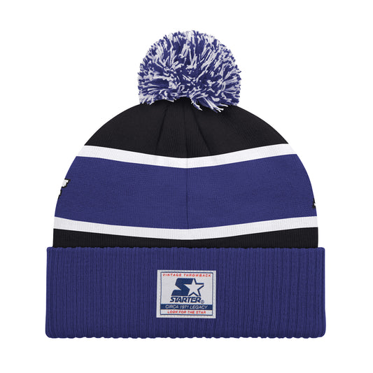 BALTIMORE RAVENS MEN'S STARTER LEGACY CUFFED KNIT WITH POM - BLACK/PURPLE