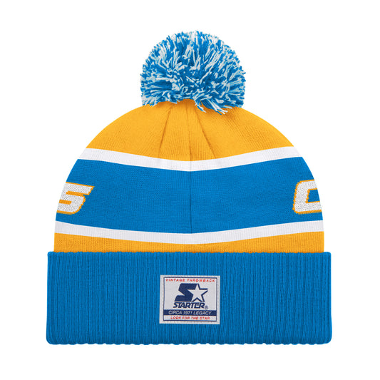 LOS ANGELES CHARGERS MEN'S STARTER LEGACY CUFFED KNIT WITH POM - GOLD/POWDER BLUE