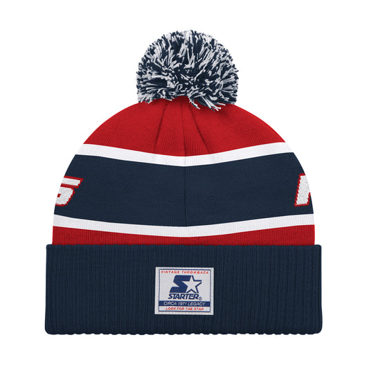 NEW ENGLAND PATRIOTS MEN'S STARTER LEGACY CUFFED KNIT WITH POM - RED/NAVY