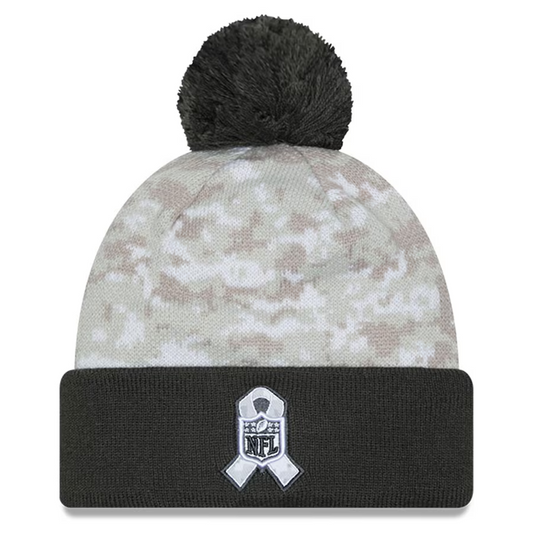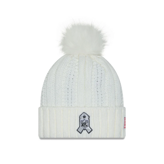 LAS VEGAS RAIDERS WOMEN'S 2024 NFL SALUTE TO SERVICE CUFFED KNIT BEANIE WITH POM - ARTIC WHITE/GRAPHITE