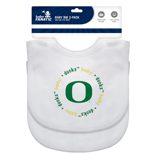 OREGON DUCKS BABY BIBS - 2 PACK - WHITE/WHITE