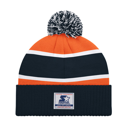 CHICAGO BEARS MEN'S STARTER LEGACY CUFFED KNIT WITH POM - ORANGE/NAVY