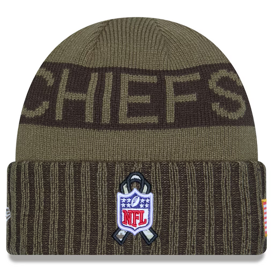 KANSAS CITY CHIEFS WOMEN'S 2025 NFL SALUTE TO SERVICE CUFFED KNIT BEANIE - GREEN
