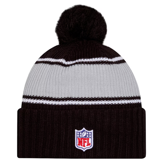 LAS VEGAS RAIDERS YOUTH 2024 NFL SIDELINE CUFFED KNIT BEANIE WITH POM - BLACK