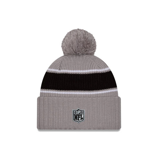 LAS VEGAS RAIDERS YOUTH 2024 NFL SIDELINE CUFFED KNIT BEANIE WITH POM - GRAPHITE