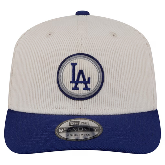 LOS ANGELES DODGERS LOYAL CORDUROY 9SEVENTY STRETCH-SNAP ADJUSTABLE HAT - CHROME WHITE/ROYAL