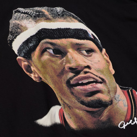 PHILADELPHIA 76ERS ALLEN IVERSON MEN'S MITCHELL & NESS REAL BIG FACE T-SHIRT - BLACK