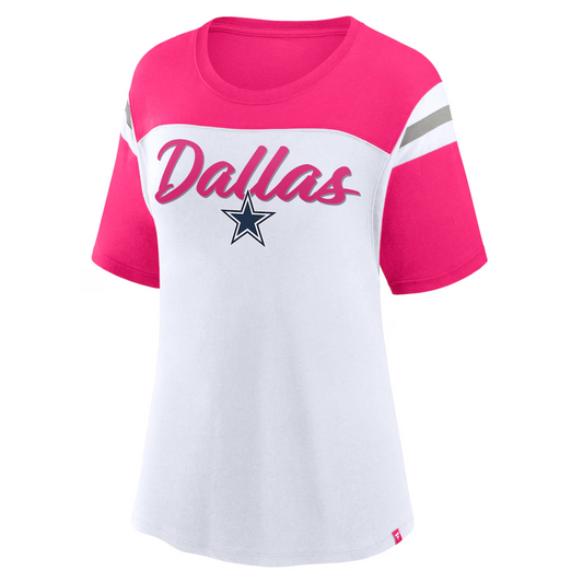 DALLAS COWBOYS WOMEN'S CHEER CHANT FASHION T-SHIRT - WHITE/PINK