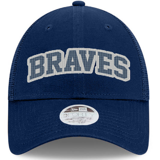 ATLANTA BRAVES WOMEN'S ARCH GLITZ 9FORTY ADJUSTABLE HAT - NAVY
