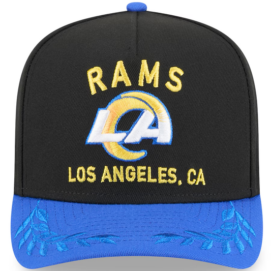 LOS ANGELES RAMS 2025 NFL DRAFT 9FIFTY A-FRAME SNAPBACK HAT - BLACK/BLUE