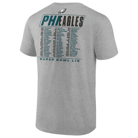 PHILADELPHIA EAGLES MEN'S SUPER BOWL LIX ROSTER T-SHIRT - HEATHER GRAY