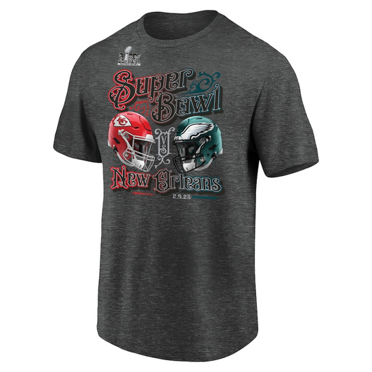KANSAS CITY CHIEFS VS. PHILADELPHIA EAGLES SUPER BOWL LIX MEN'S FINAL BATTLE T-SHIRT - CHARCOAL GRAY