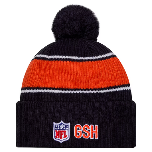 CHICAGO BEARS 2024 NFL SIDELINE CUFFED KNIT BEANIE WITH POM - NAVY