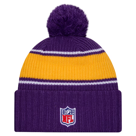 MINNESOTA VIKINGS 2024 NFL SIDELINE CUFFED KNIT BEANIE WITH POM - PURPLE