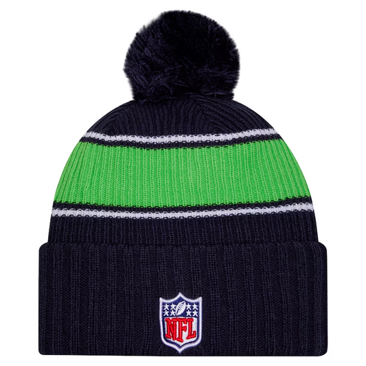 SEATTLE SEAHAWKS 2024 NFL SIDELINE CUFFED KNIT BEANIE WITH POM - BLUE