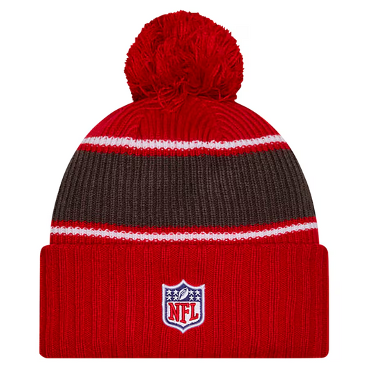 TAMPA BAY BUCCANEERS 2024 NFL SIDELINE CUFFED KNIT BEANIE WITH POM - RED