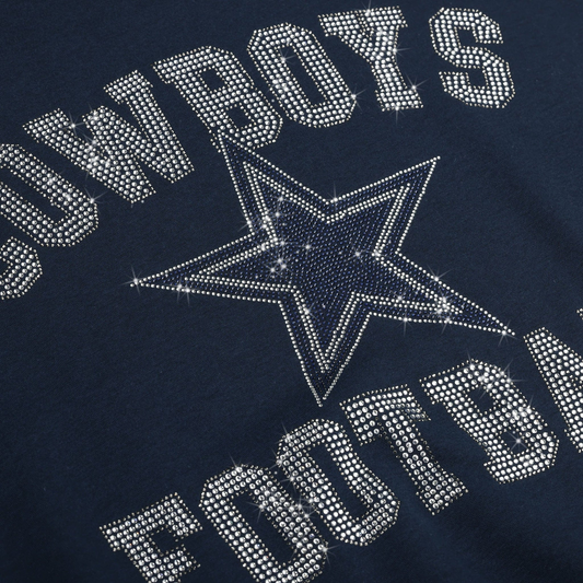DALLAS COWBOYS WOMEN'S FOCO RHINESTONE LOGO OVERSIZED CREW NECK SWEATSHIRT - NAVY