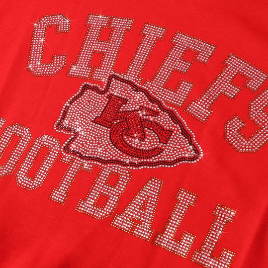 KANSAS CITY CHIEFS WOMEN'S FOCO RHINESTONE LOGO OVERSIZED CREW NECK SWEATSHIRT - RED