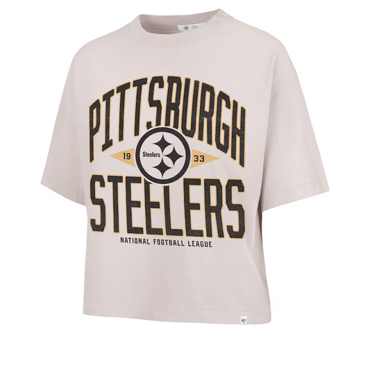 PITTSBURGH STEELERS WOMEN'S '47 BRAND WINDTHROW RAVINE CROPPED T-SHIRT - MOJAVE