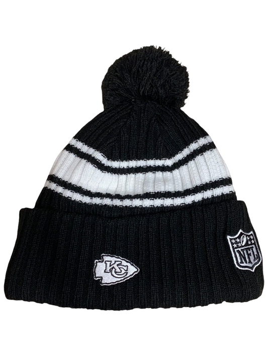 KANSAS CITY CHIEFS 2022 SIDELINE SPORT CUFFED POM KNIT -BLACK/WHITE