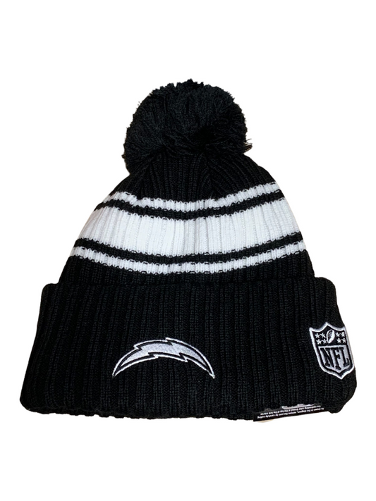 LOS ANGELES CHARGERS 2022 SIDELINE SPORT CUFFED POM KNIT -BLACK/WHITE