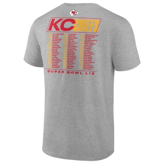 KANSAS CITY CHIEFS MEN'S SUPER BOWL LIX ROSTER T-SHIRT - HEATHER GRAY