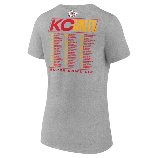 KANSAS CITY CHIEFS WOMEN'S SUPER BOWL LIX ROSTER T-SHIRT - HEATHER GRAY