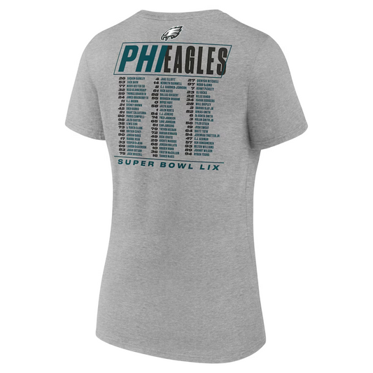 PHILADELPHIA EAGLES WOMEN'S SUPER BOWL LIX ROSTER V-NECK T-SHIRT - HEATHER GRAY