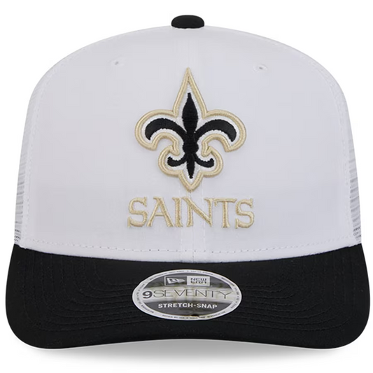 NEW ORLEANS SAINTS 2024 NFL TRAINING CAMP 9SEVENTY STRETCH SNAP TRUCKER HAT - WHITE