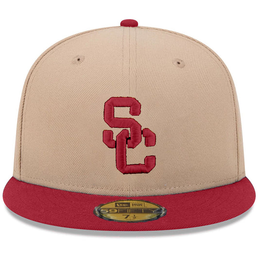 USC TROJANS TWO-TONE EVERGREEN BASIC 59FIFTY FITTED HAT - CAMEL/MAROON