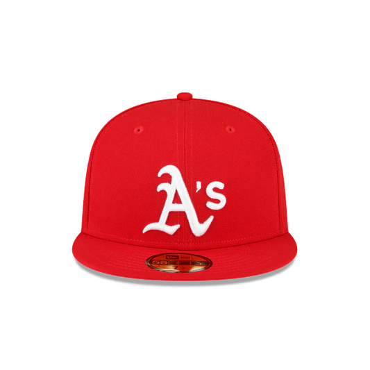 GORRA AJUSTADA 59FIFTY DE LA SERIE MUNDIAL CON PARCHE LATERAL DE OAKLAND ATHLETICS - ROJO
