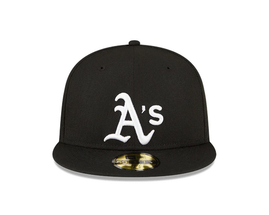 GORRA AJUSTADA 59FIFTY CON PARCHE LATERAL DE LA SERIE MUNDIAL CON PARCHE LATERAL DE OAKLAND ATHLETICS - NEGRO/BLANCO