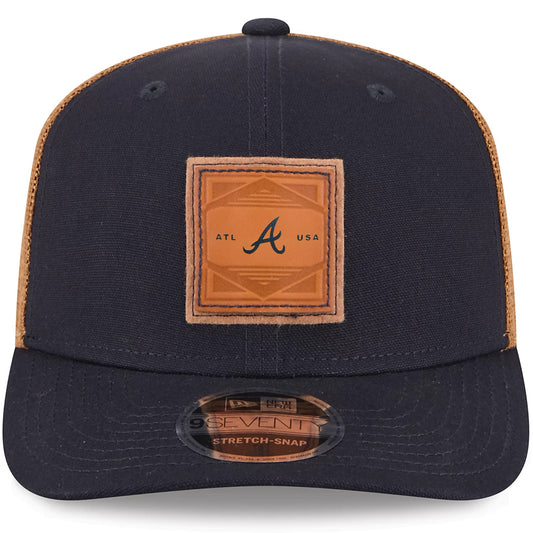 ATLANTA BRAVES DEBOSSED LOGO TRUCKER 9SEVENTY SNAPBACK HAT - NAVY