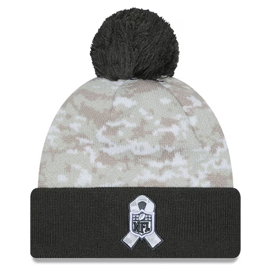 INDIANAPOLIS COLTS 2024 NFL SALUTE TO SERVICE CUFFED KNIT BEANIE WITH POM - ARTIC WHITE/GRAPHITE