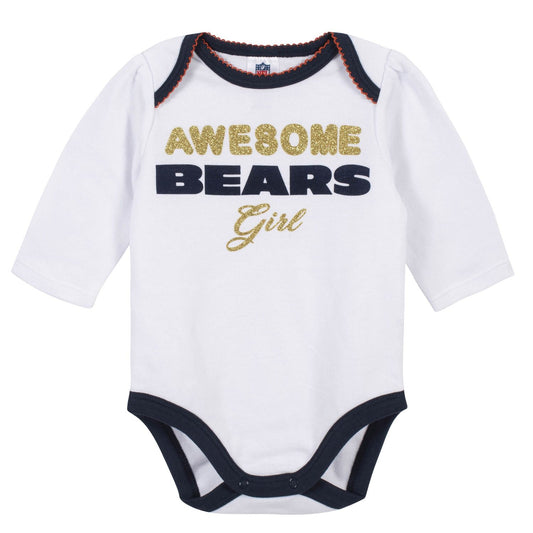 CONJUNTO DE PIJAMA DE 3 PIEZAS CON PIES DE CHICAGO BEARS NIÑA RECIÉN NACIDA