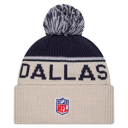 DALLAS COWBOYS YOUTH 2024 NFL SIDELINE HISTORIC CUFFED KNIT WITH POM - STONE/NAVY