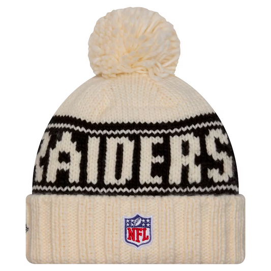 LAS VEGAS RAIDERS 2024 NFL HISTORIC SIDELINE CUFFED KNIT BEANIE WITH POM - STONE/BLACK