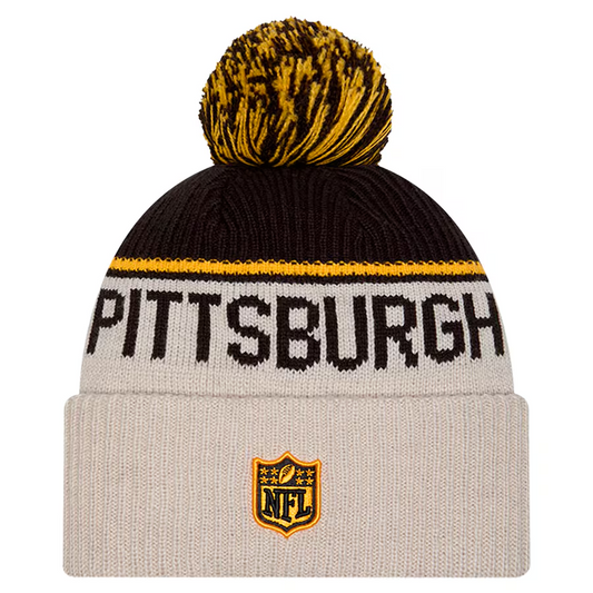 PITTSBURGH STEELERS 2024 NFL HISTORIC SIDELINE CUFFED KNIT BEANIE WITH POM - STONE/BLACK