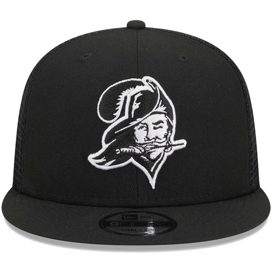 TAMPA BAY BUCCANEERS RETRO EVERGREEN TRUCKER 9FIFTY SNAPBACK HAT - BLACK/WHITE