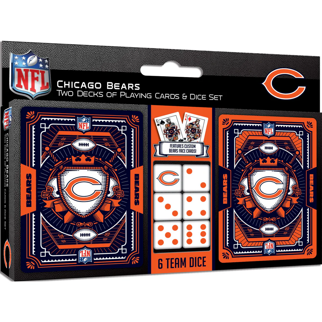 Elevate your game nights with the Chicago Bears 2-Pack Card and Dice Set. With a unique design featuring your favorite team, these playing cards and 16mm D6 dice add a touch of NFL style to your game room. From poker to board games, this set from Master Pieces brings the casino to you, making it a must-have for any passionate fan.