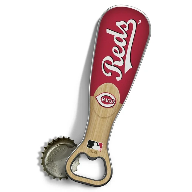 Get ready to hit a home run with the Cincinnati Reds Baseball Bat Bottle Opener! This novelty bottle opener is the perfect addition to your baseball outings, allowing you to support your favorite MLB team while easily opening bottles. Don't be surprised when your friends and fellow team fans start asking to use this awesome opener. Start the season right with the Baseball Season bottle opener!