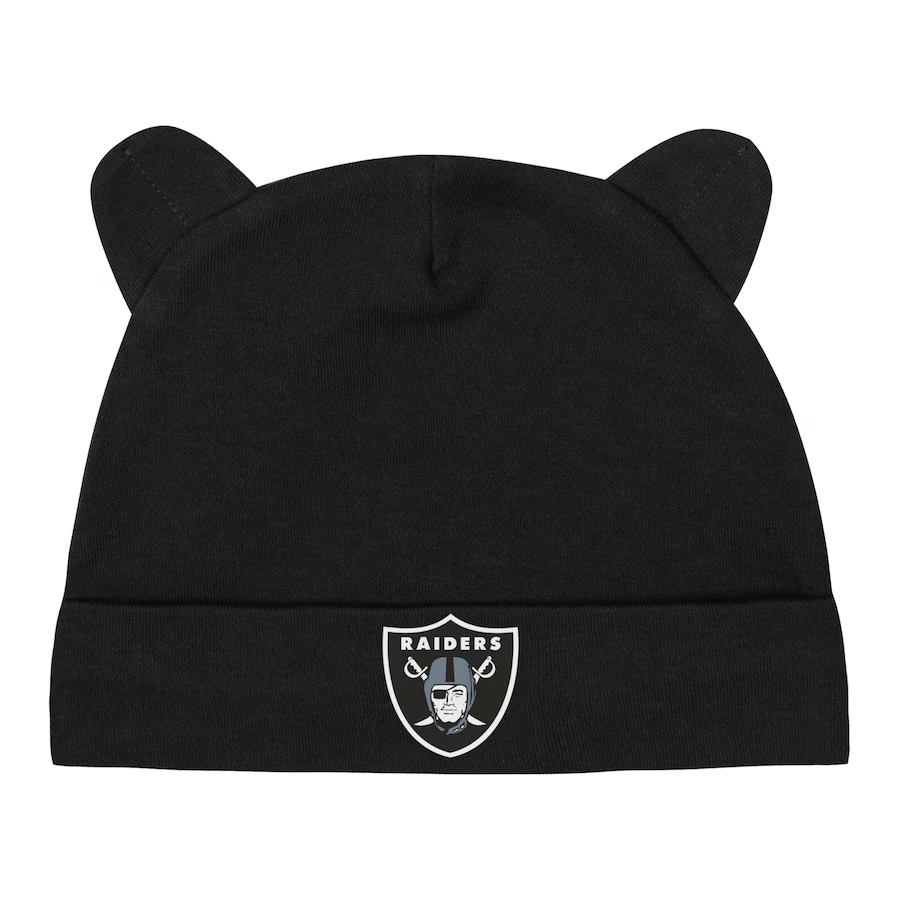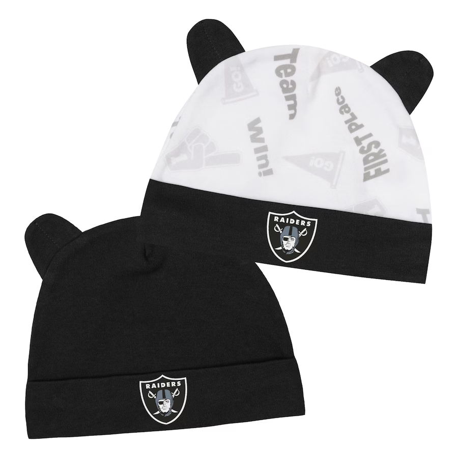 Show your support for the Raiders with the Las Vegas Raiders Newborn Baby Bear Cuffed Knit Hat. This set includes two cute baby bear knit caps with tiny ears to keep your little one warm and show their support for their favorite team. An essential accessory for newborn and infant babies, this set is a must have for any Las Vegas Raiders fan.
